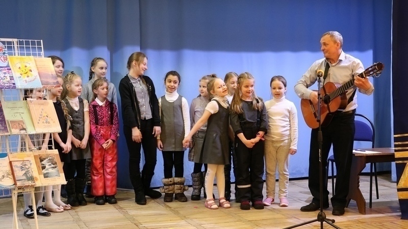 На празднике присутствовали учащиеся начальных классов гимназии №5. Концертная программа была насыщенной. Юные артистки вокальной студии гимназии №1 под руководством Вячеслава Новицкого – Милана Костюченко, Ксюша Немкина, Таисия Соколова исполнили песни на стихи поэтов-земляков. Мурманский бард, композитор и поэт Александр Базанов продолжил концерт своей новой песенной программой, а ребята весело подпевали артисту на сцене и прямо из зала. Присутствующие поняли, что такое песня: