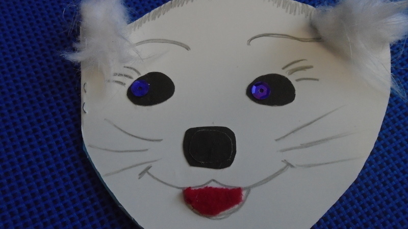 Обложку в форме кота ребята вырезали из плотного белого картона, глазки оформили из чёрного картона и пайеток, а нос сделали из красной бархатной бумаги и фетра. На странички книжки дети наклеивали весёлые стихотворения о котятах и украшали красочными и забавными рисунками мурлык.