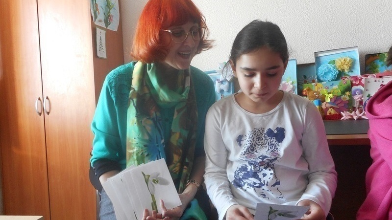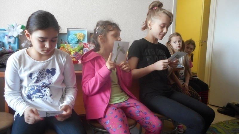 Заведующая отделом психологической поддержки читателей предложила ребятам вспомнить весенние приметы в стихах-загадках современных поэтов. Маленькие пациенты попробовали себя в роли актеров, разыграв этюд по стихотворению «Два зайчика». Все желающие смогли громко почитать стихи, таким образом, собирая букет их весенних стихов и весенних цветов.
