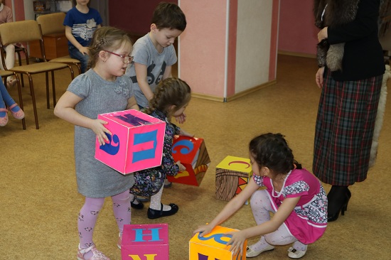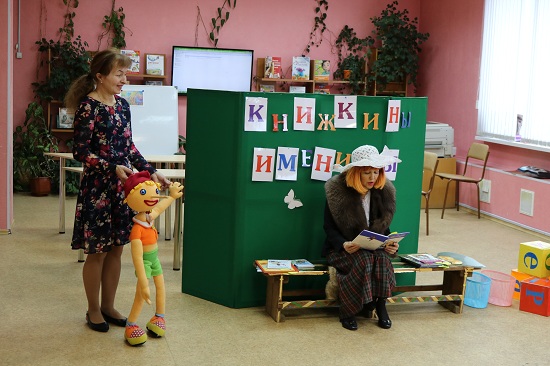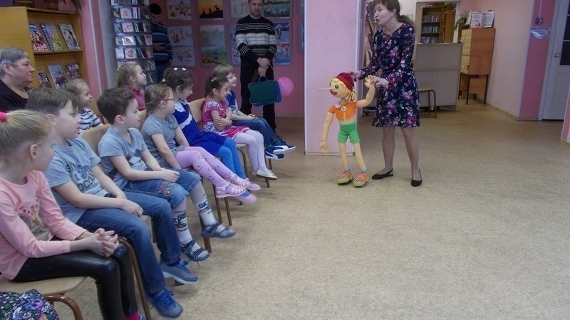 Алиса выступила в роли библиотекаря и пригласила всех в сказочную библиотеку, где она приготовила литературные задания. Озорник Буратино вместе с ребятами отгадывал героев детских книг по прочитанным отрывкам текста и все вместе весело играли. Собирали из кубиков слова, добывали золотые монеты, вместе спели любимую песню Буратино.