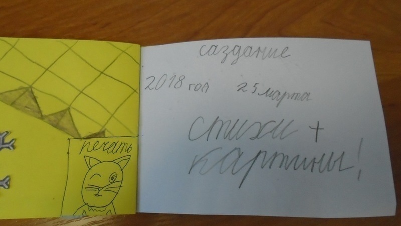 Обложку юные мастерята вырезали из белого картона и украсили её аппликацией в виде саамской сумочки, которую раскрасили карандашами и фломастерами. Странички книги дети оформили историями собственного сочинения и заготовками стихов о персонажах сказок и преданий коренных народов Кольского Севера: человечке Чахкли, олене Мяндаше, олене – вожаке Гирвасе, дочери Солнца. Дополнительно эти страницы ребята украсили своими рисунками в виде традиционных узоров саамов, оленей, куваксы, морошки.