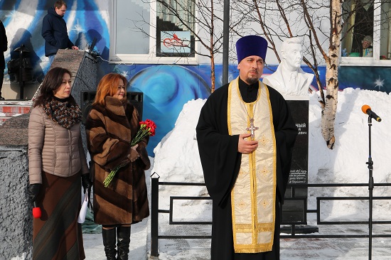 Завершилась церемония открытия освящением памятного бюста и возложением цветов.