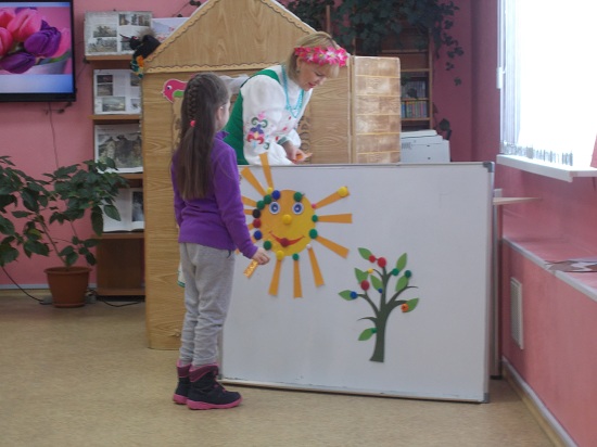 Герои детских книг и мультфильмов мудрая Ворона и кукла Маша пригласили детей отправиться в путешествие в весенний лес, где ребята узнали о первых приметах весны, отгадали по голосу перелетных птиц.
