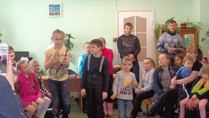 Юные читатели и их родители познакомились с традициями и обычаями русского народа: узнали, как жили, во что одевались, чем занимались и в какие игры играли наши предки. Дети и взрослые с удовольствием принимали участие в конкурсах и играх: пекли хлеб, доили коров, стреляли из лука, сеяли, собирали урожай, пробовали себя в роли Змея Горыныча.