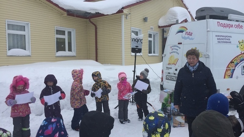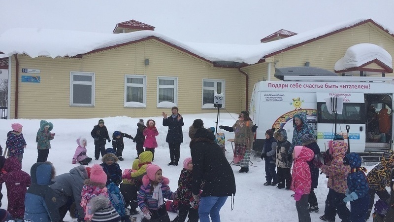Дошколята из Печенги смогли познакомиться с необычной детской библиотекой, узнать, какими техническими средствами она оснащена. Ребята с удовольствием отгадывали загадки, узнавали сказочных героев по «каверзным» вопросам Бабы-яги. Прямо под снегом из кубиков увлеченно собирали иллюстрации к русским народным сказкам. Непрекращающийся снег не помешал малышне веселиться, водить хороводы.