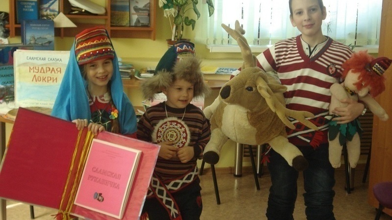 Девочки примеряли саамский национальный головной убор, а мальчики кормили северного оленя ягелем. С большим удовольствием разглядывали читатели удивительные книги участников Международного конкурса детской рукописной книги номинации «Мой сильный маленький народ».