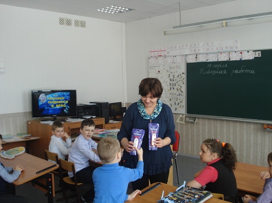 В конце занятия школьники разгадали космические загадки и посмотрели познавательный мультфильм «Полетим к далёким звёздам».