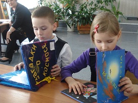 Большую заинтересованность у ребят вызвали рукописные книги на космическую тему, которые они с удовольствием разглядывали и читали.