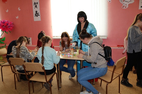 В программе вечернего праздника прошли творческие занятия, которые провели специалисты МК «Отличная идея» города Мурманска. Художница Инна Бахмацкая провела мастер-класс по объемной живописи «Ветка сакуры», а урок создания поделок в технике оригами для маленьких и взрослых – Малашенко Ольга.