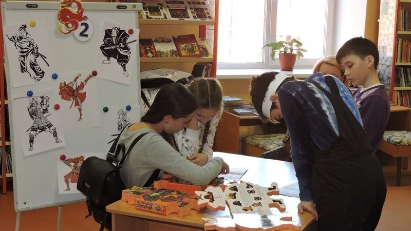 Путешествуя от острова к острову и используя в качестве путеводителя дракона с цифрой, юные исследователи знакомились с месторасположением Страны восходящего солнца, читали народные сказки японских островов. Используя в качестве подсказки энциклопедии, находили сведения о жизни, воспитании, обучении и играх японских детей. Знакомились с красочно оформленной выставкой–витриной и приобщались к японской культуре. А еще играющим предстояло правильно собрать судоку, найти лишнюю тень самурая, научиться пользоваться палочками.