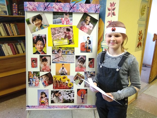 Для учащихся среднего и старшего школьного возраста была организована викторина «Обычаи и традиции самой загадочной страны мира». Вопросы были оформлены на белых карточках, а подсказки – на разноцветных с соответствующими изображениями: чайной чашечки, национального японского костюма, детей, отмечающих праздник. И юные граждане, и взрослые не только самостоятельно отвечали на вопросы, но и с интересом читали информацию, а затем делились ею с организаторами викторины и с друзьями. Они узнали о том, что маленькие жители страны в новогоднюю ночь кладут под подушку точный рисунок своей мечты, что национальная японская одежда называется вафуку, что чайной церемонии предшествует фуршет – кайсэки, что улыбка в Японии не только естественное выражении эмоции, это ещё и форма этикета. Гостям мероприятия рассказали о кукольном театре бунраку.