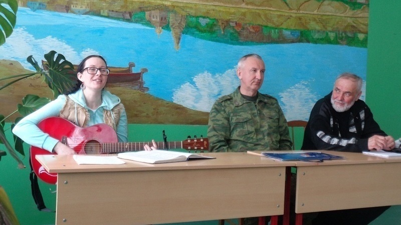 Все встречи сопровождались патриотическими стихами и лирическими песнями в исполнении Ольги Закировой (Заозёрск).