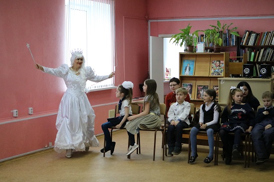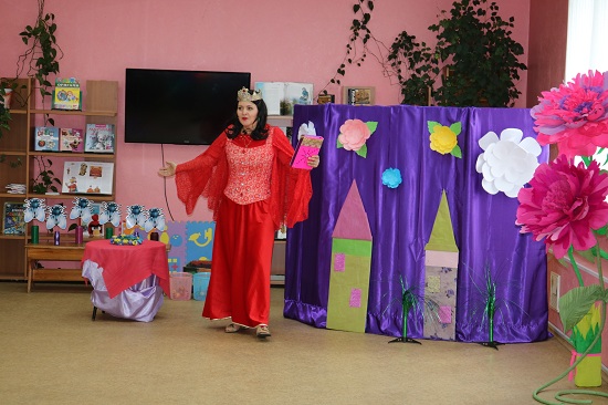 Следом за Трубодурочкой на бал пришла фея-крестная из сказки «Золушка» и попросила ребят помочь ей приготовить Золушку к ее главному балу, а затем станцевала вместе с ними веселый танец под любимую песню Золушки.