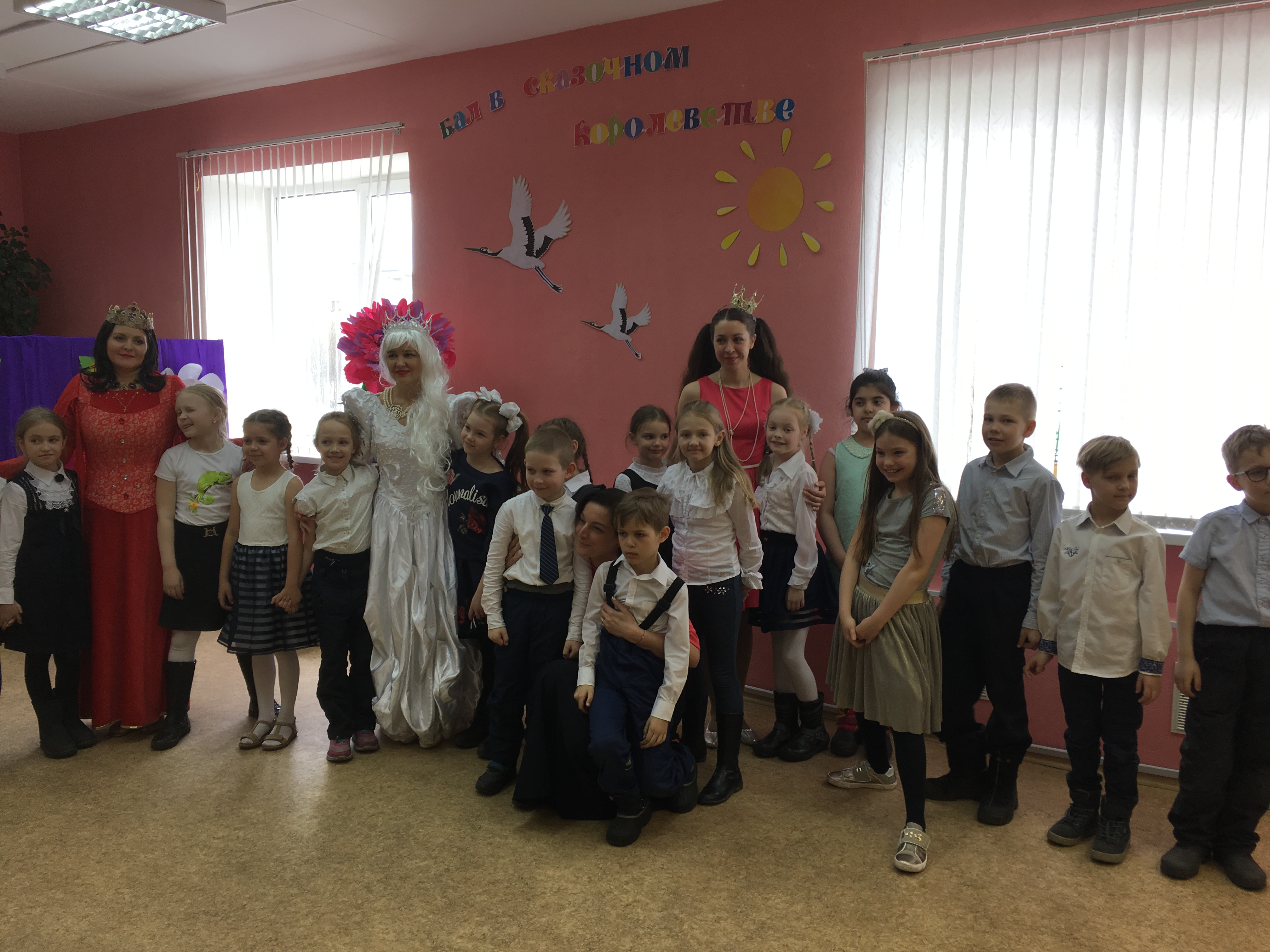 На праздничном балу ребят ждала встреча с героями сказочного королевства. Встреча началась с королевского глашатая, который оповестил всех жителей королевства о предстоящем бале. Затем бал открыла Королева сказок, которая поздравила ребят с окончанием первого класса и пригласила повеселиться на праздничном балу вместе со сказочными героями.