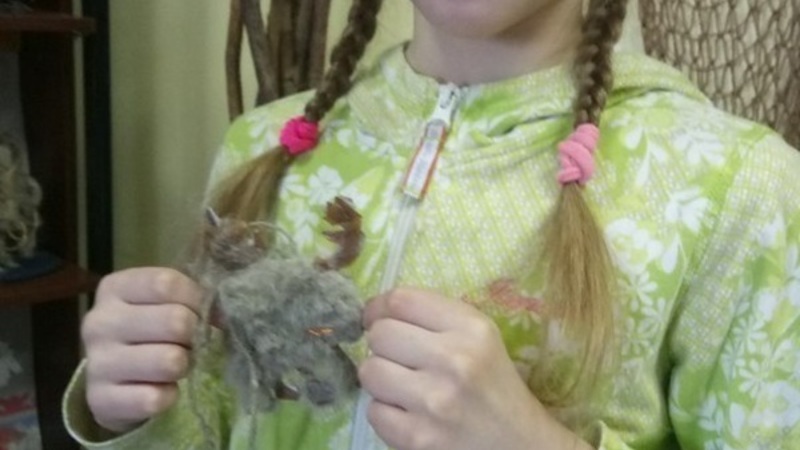 В завершение творчества девочки подстригли оленю мех и украсили рога засушенными цветами и бусинами, а из джутовых ниток смастерили цепочку для самодельной подвески.