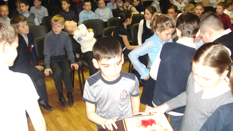 В конце занятия дети с большим интересом разглядывали и читали книги участников Международного конкурса детской рукописной книги номинации «Нам не нужна война».
