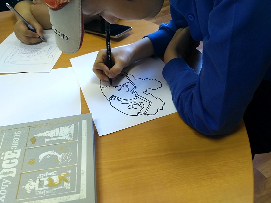 С энтузиазмом подростки попробовали создать свои варианты экслибрисов для личных библиотек.