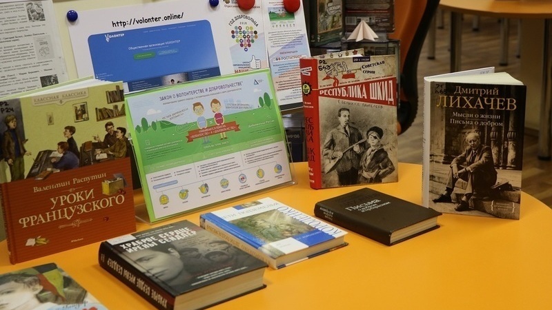 На выставке-обзоре, подготовленной сотрудниками отдела, школьники познакомились с книгами, повествующими о неравнодушных, готовых оказать безвозмездную помощь нуждающимся людям: «Тимур и его команда» А. Гайдара, «Уроки французского» В. Распутина, «Храброе сердце Ирены Сендлер» Д. Майера, «Письма о добром и прекрасном» Д. Лихачева, «Дети подземелья» В. Короленко и др. Герои этих книг милосердны, искренни, незамедлительно отзываются на чужую беду и готовы в любой момент протянуть руку помощи.