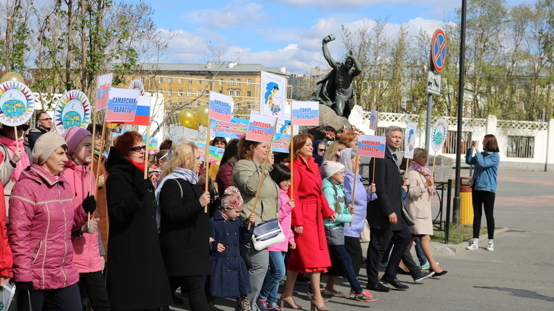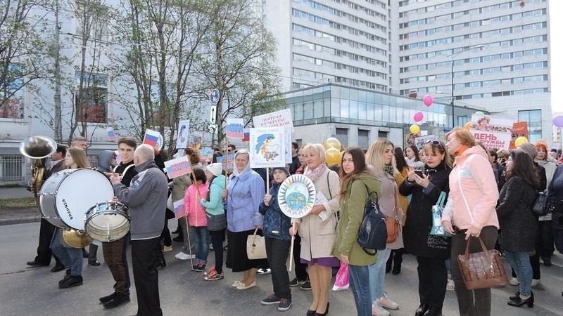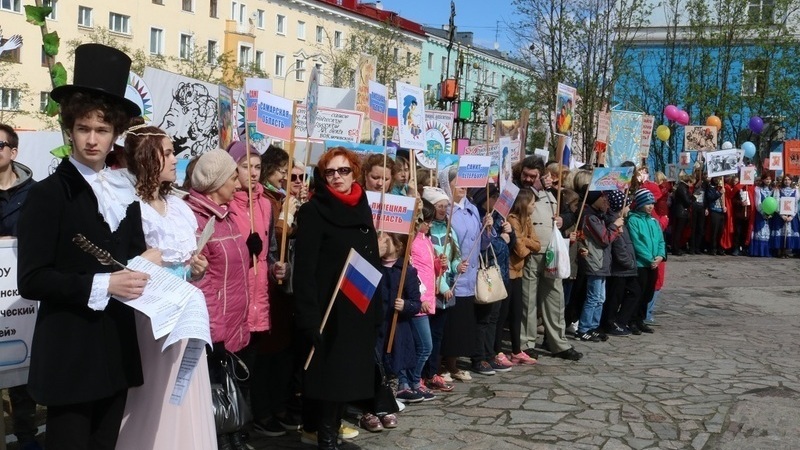 В шествии участвовали конкурсанты из Военно-морского Нахимовского училища, школ, гимназий и других образовательных организаций Мурманска, а также из Североморска, Колы, Полярных Зорь.