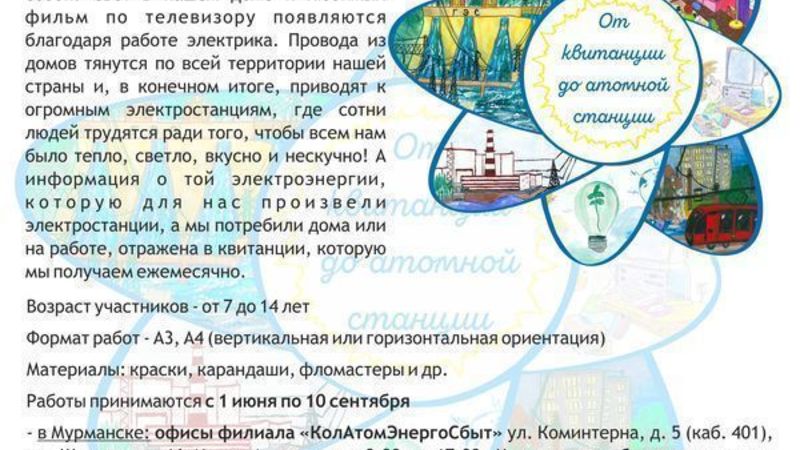 «Ребятам предлагается изобразить энергетику Кольского края: от выработки энергии на станциях до поступления света в дома северян. Таким образом, конкурс охватит сразу несколько значимых мероприятий – его старт приурочен к Международному дню защиты детей, а итоги планируется подвести в период проведения Всероссийского фестиваля энергосбережения «Вместе Ярче» в сентябре, – пояснил директор филиала «КолАтомЭнергоСбыт» Алексей Горчаков. – Тематика энергетики Кольского края тоже выбрана не случайно – в этом году Мурманская область отмечает 80-летний юбилей. Развитие нашей области исторически тесно связано с электрификацией Заполярья в соответствии с планом ГОЭЛРО».