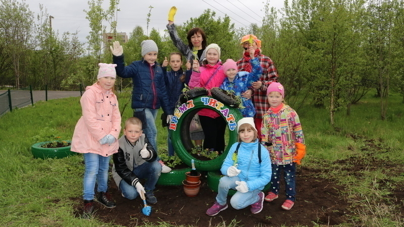 Завершился праздник на улице полюбившейся всем акцией «Цветы улыбки лета», организованной и проведенной сотрудниками библиотеки во второй раз. Юные цветоводы высадили саженцы растений на цветочной аллее перед библиотекой. Мы не сомневаемся, что ребята, участвующие в акции по озеленению, станут настоящими созидателями и творцами прекрасного.