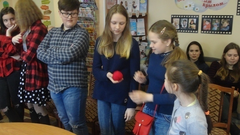 В начале встречи библиотекарь провела игру на знакомство, в которой ребята придумывали прилагательные на букву своего имени. Затем перешли к тестам.