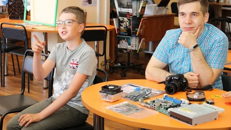 На занятии дети в игровой форме изучили устройство компьютера и его основные элементы. Заглянули внутрь системного блока и узнали, из каких деталей он состоит и для чего они нужны. Все экспонаты музея можно было трогать руками.