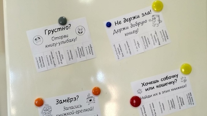 Юных посетителей выставки ждали необычные рекомендательные объявления с книгами.