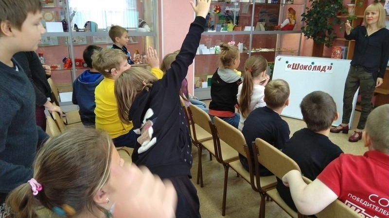Большое удивление вызвали скульптуры из шоколада, попавшие в Книгу рекордов Гиннесса. Ребята узнали, чем полезен шоколад, ответили на вопросы викторины и поиграли в игры: «Составь слова», «Угадай: Марс или Сникерс?».