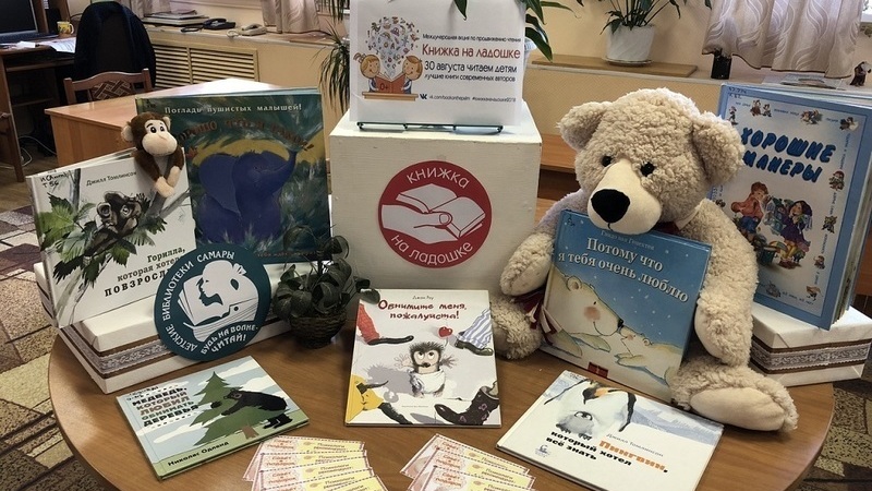 Библиотекарь отдела психологической поддержки читателей и ведущий методист научно-методического отдела в рамках Международной акции «Книжка на ладошке – 2018», инициированной и организованной Централизованной системой детских библиотек города Самары, провели литературно-игровое занятие «Чтение в обнимку». Участниками акции стали воспитанники детского сада №50.