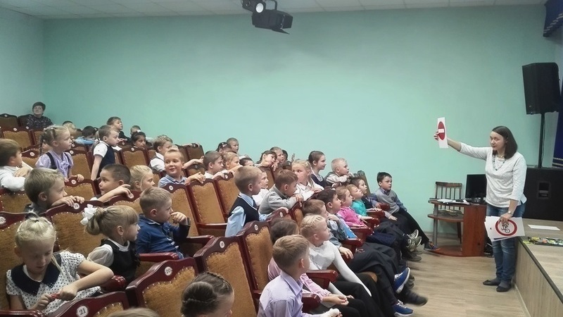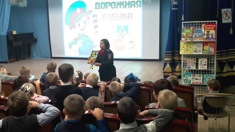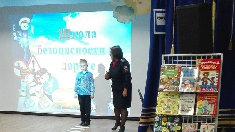 Сотрудники отдела библиотечного обслуживания обучающихся 1-4 классов вместе с инспектором по пропаганде ОБ ДПС ГИБДД в игровой форме напомнили детям, как правильно переходить дорогу, различать дорожные знаки, сигналы светофора, пользоваться пешеходным переходом. Школьники совместно с ведущими проиграли ситуации, которые могут произойти на дороге.