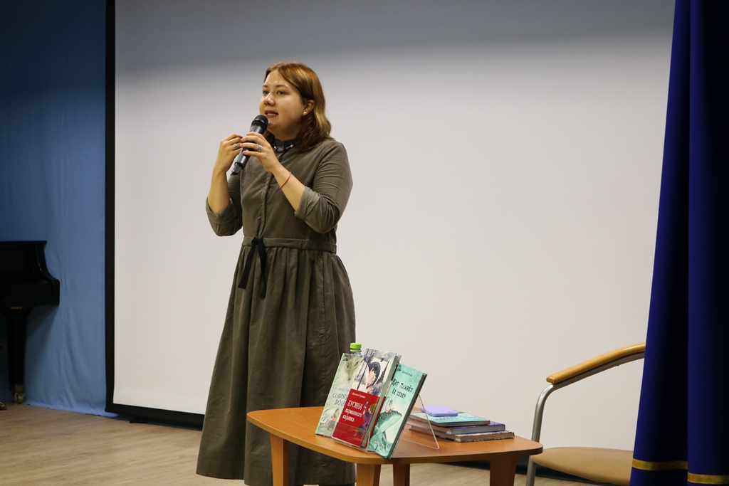 В этот раз Анастасия Игоревна приехала к нам с целью популяризации литературного конкурса «КНИГУРУ» и привлечения ребят в детское жюри конкурса. Поэтому началось выступление с рассказа о конкурсе, о том, как можно стать его экспертом. Детям дана полная свобода выбора! От них все узнают, какие книги самые увлекательные, самые красочные, самые серьезные, самые необычные, самые трогательные, самые информативные, самые загадочные и самые оптимистичные.