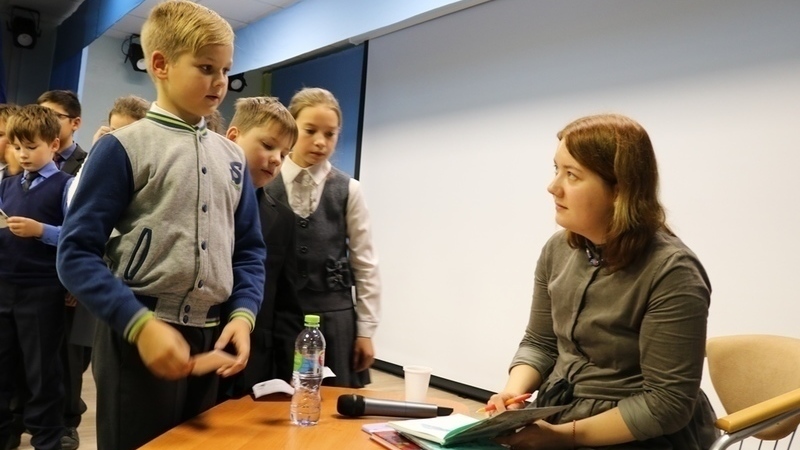 Школьников интересовало все: как рано она начала писать, как приходит вдохновение, какое у нее любимое животное, с кем она дружила в детстве, почему ее книги названы так, а не иначе и многое другое.
