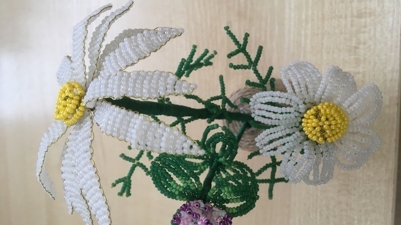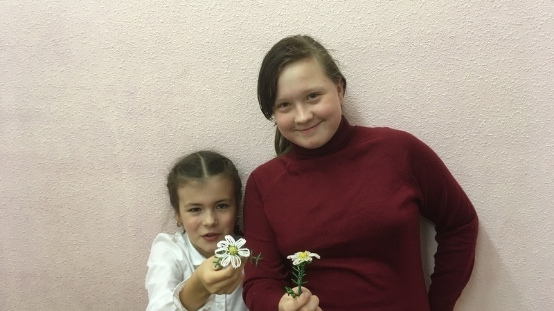 Юные рукодельницы сплели ромашку из бисера, используя французскую технику бисероплетения для чашечки цветка, игольчатую – для листьев и объемное плетение для серединки цветка. Итогом творчества стала семилистная ромашка, которая порадовала своих создателей и напомнила о летней цветочной поляне в деревне у бабушки.
