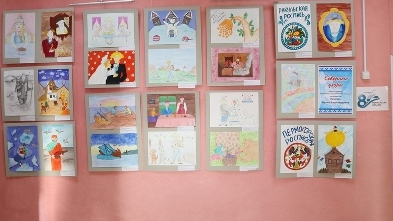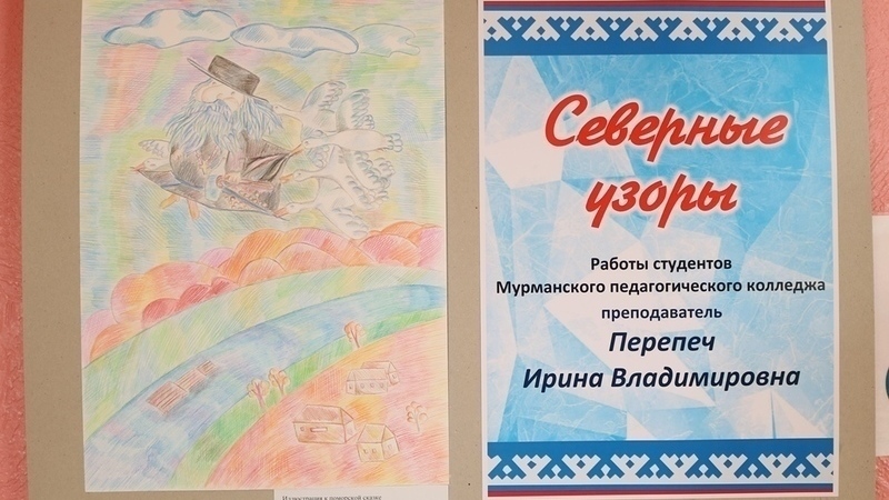 Экспозиция включает творческие работы студентов Мурманского педагогического колледжа, преподавателей, мастеров п. Междуречья и города Заозёрска Мурманской области. На выставке представлены поделки, выполненные в разных техниках, из разнообразных материалов: тряпичная кукла-оберег, авторские матрёшки, русская северная вышивка, мезенская, ракульская, пермогорская роспись по дереву. Также выставлены яркие красочные тарелки, досочки, полотенца, предметы быта русского народа, иллюстрации к поморским сказкам, литературным произведениям и саамским легендам. Рисунки, выполнены карандашом и красками.