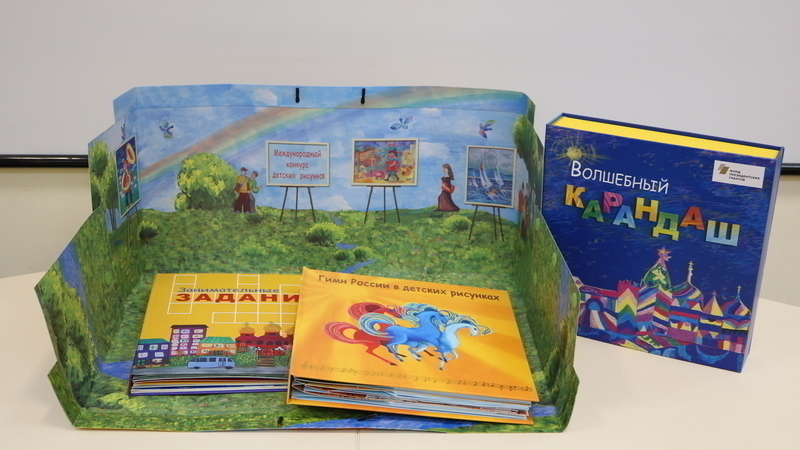 В оригинальной упаковке, которая разворачивается в игровое поле, находятся две книги «Гимн России в детских рисунках» и «Занимательные задания». К книгам прилагается электронное устройство для считывания микрокодов «Волшебный карандаш», который озвучивает текст и оживляет картинки, делая ее очень доступной и привлекательной для детей с нарушениями зрения.