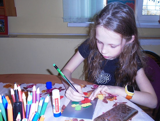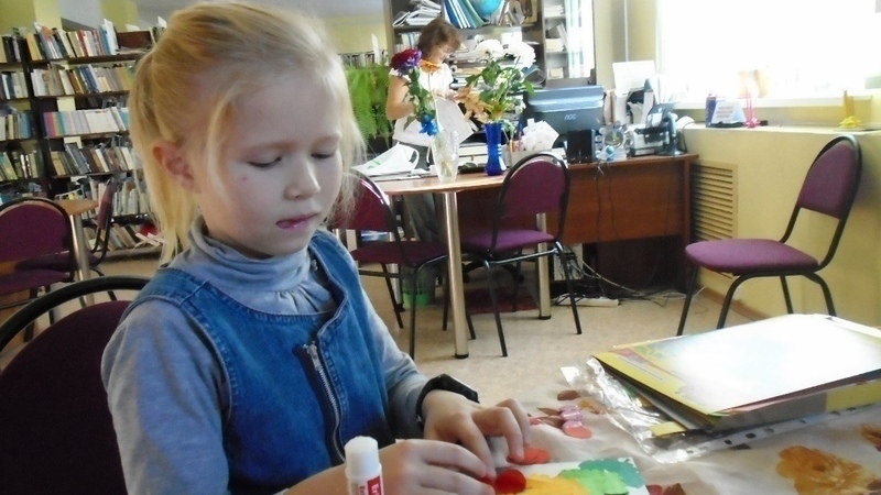 Обложку книги ребята создали из разноцветного картона, на котором они оформили аппликацию в виде осенней рябиновой веточки с ягодками из зелёной, салатовой, жёлтой, оранжевой и красной бумаги.