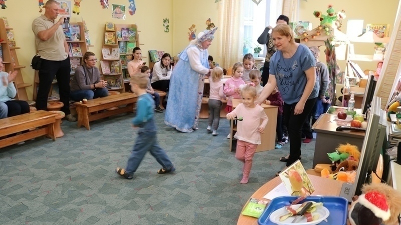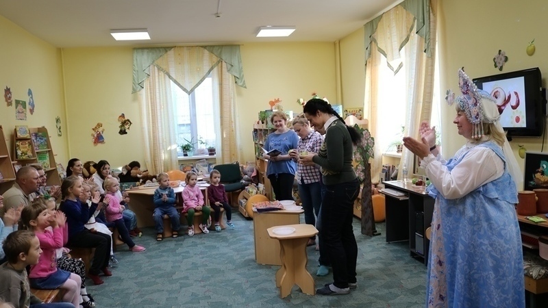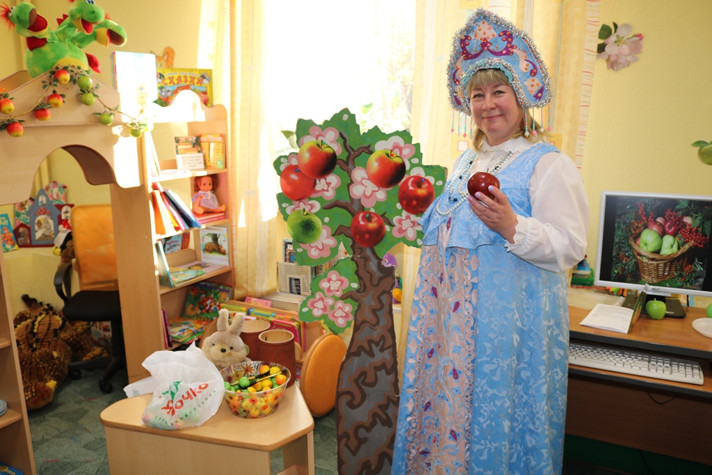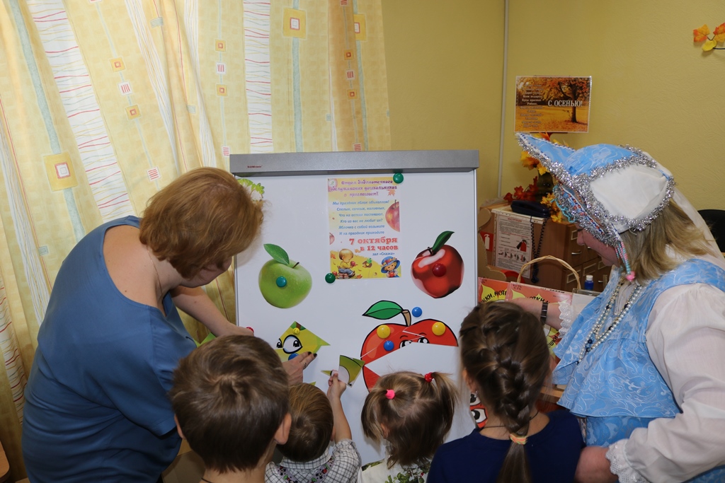Сотрудники отдела библиотечного обслуживания дошкольников порадовали своих маленьких читателей праздником спелых яблок. Пришли на праздник все веселые да нарядные. Только вмешалась Баба-яга, отправила она слуг своих верных гусей-лебедей в Волшебный сад. Украли гуси-лебеди яблоки, да по сказкам спрятали. Чтобы яблоки найти и в сад вернуть, малыши вспоминали сказки яблочные и задания выполняли.