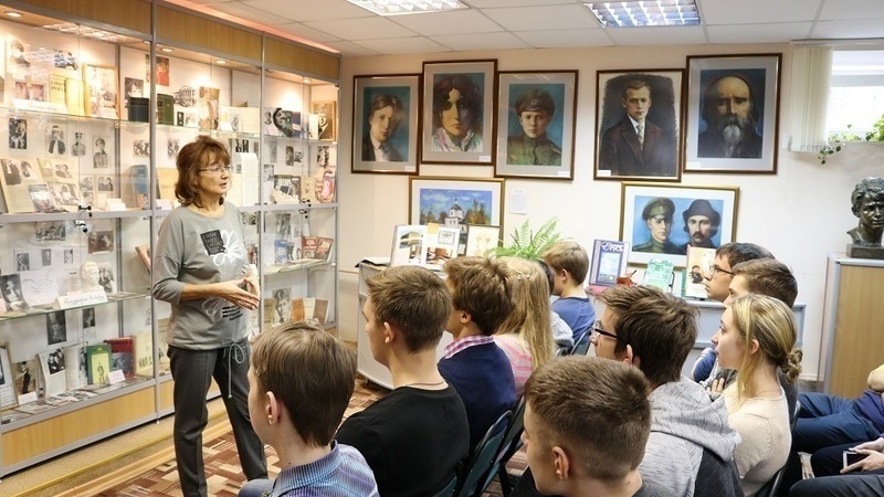Интерес студентов вызвала основная экспозиция музея, рассказывающая об основных этапах жизни и творчества С.А. Есенина, его родных, друзьях, товарищах по перу. Прозвучал рассказ о редких прижизненных изданиях книг Сергея Есенина, картинах и скульптурах, подаренных музею.