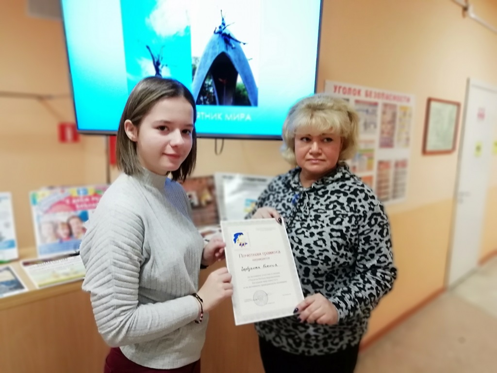Юные мурманчане приняли участие в поэтической страничке: они прочитали стихи, посвящённые подвигам героев. Почётными грамотами за исполнение патриотической лирики были награждены учащаяся гимназии № 9 Гарбузова Ксения, обучающиеся гимназии № 2 Лупилина Полина и Костюченко Ирина.