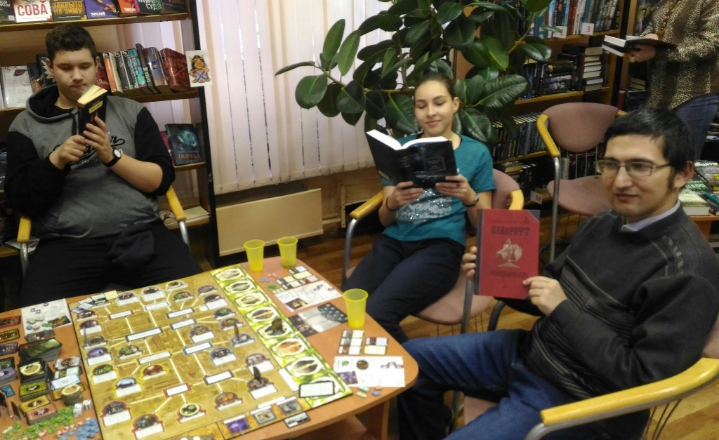 Темой собрания было выбрано творчество Говарда Филлипса Лавкрафта. Ребята прочитали рассказы американского писателя, поделились моментами, которые их напугали или насторожили, или, напротив, заставили зевать от скуки. В качестве бонуса участники литклуба поиграли в «Ужас Аркхэма» – масштабную настольную игру, созданную по мотивам произведений Лавкрафта. Действие в ней происходит в вымышленном городке Аркхэме штата Массачусетс в 1926 году.