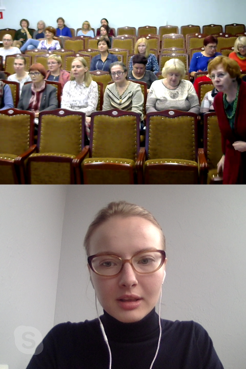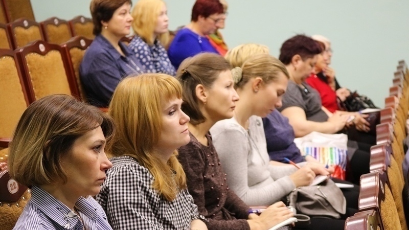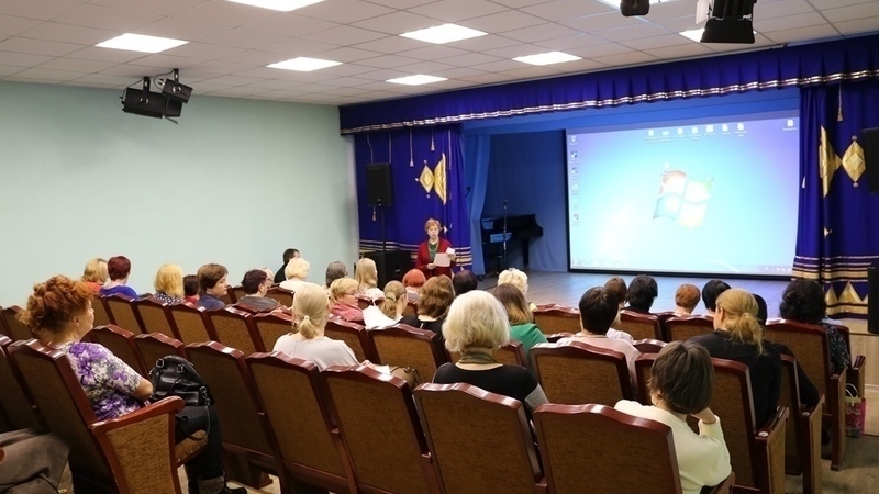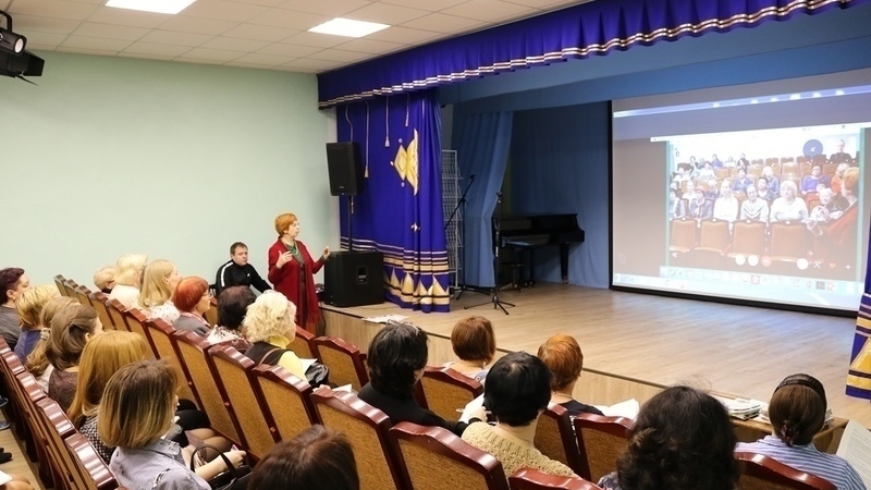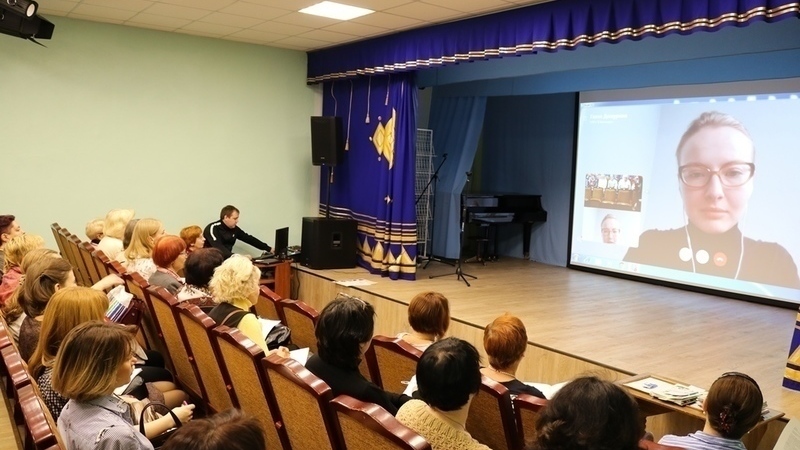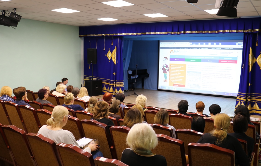 Перед аудиторией выступили сотрудники отдела педагогического общения с рассказом о новой литературе в помощь учебно-педагогическому процессу, а также был представлен образовательный ресурс «БиблиоШкола».