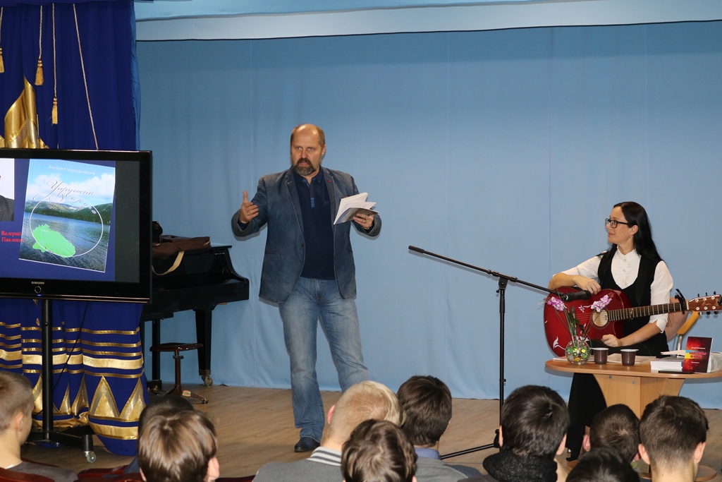 Для них прозвучали стихи «Седые снега Заполярья», «Памяти друга», «Город брошенных мужчин» и многие другие в исполнении самого автора. Поэт легко работал с аудиторией, которая с большим вниманием слушала удивительного человека, а музыкальные вставки с песнями на стихи Валерия Чарторийского в исполнении Ольги Закировой порадовали слушателей своей лиричностью и мелодичностью.