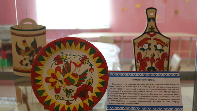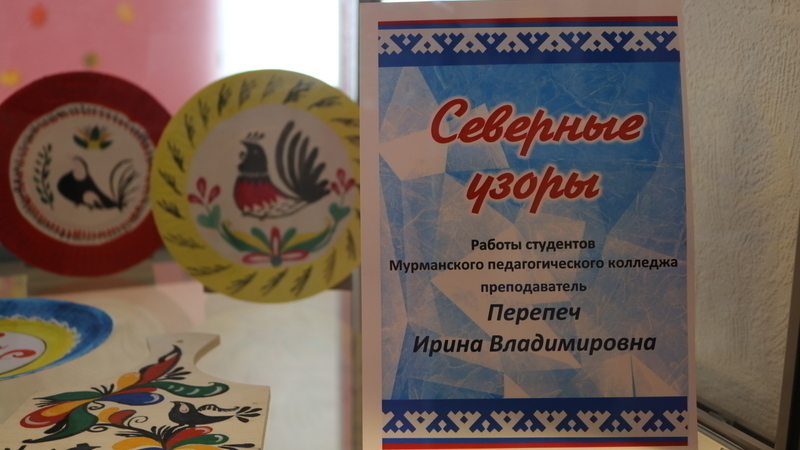Экспозиция включает творческие работы студентов Мурманского педагогического колледжа, преподавателей, мастеров п. Междуречья и города Заозёрска Мурманской области. На выставке представлены поделки, выполненные в разных техниках, из разнообразных материалов: тряпичная кукла-оберег, авторские матрёшки, русская северная вышивка, мезенская, ракульская, пермогорская роспись по дереву. Также выставлены яркие красочные тарелки, досочки, полотенца, предметы быта русского народа, иллюстрации к поморским сказкам, литературным произведениям и саамским легендам. Рисунки, выполнены карандашом и красками.