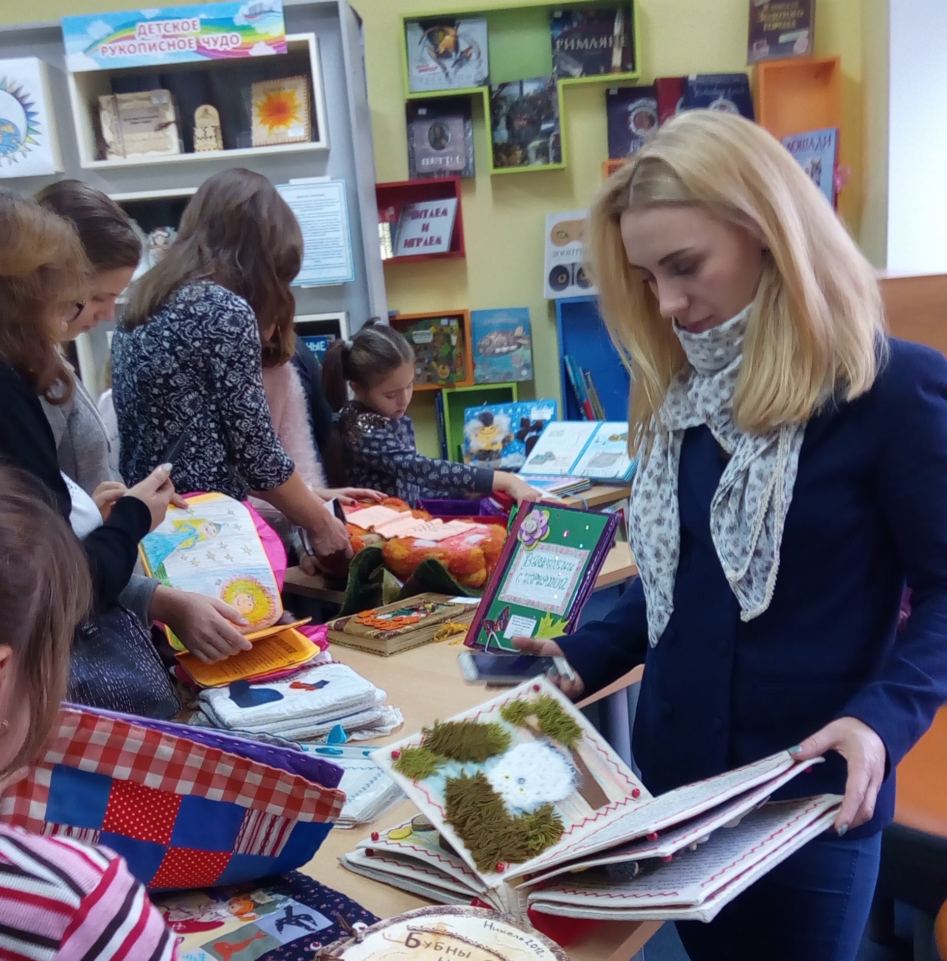 Выставка поразила юных гостей разнообразием форм представленных книжных изданий. Их можно прочитать, с ними можно поиграть, среди них много книг-игрушек. То, как книги представлены, тоже интересно. Для их создания творческие авторы использовали самые разные материалы: дерево, бисер, мех, перья, нитки, глину, тесто, кожу, военные артефакты. Тексты книг написаны от руки, напечатаны и даже вышиты цветными нитками!