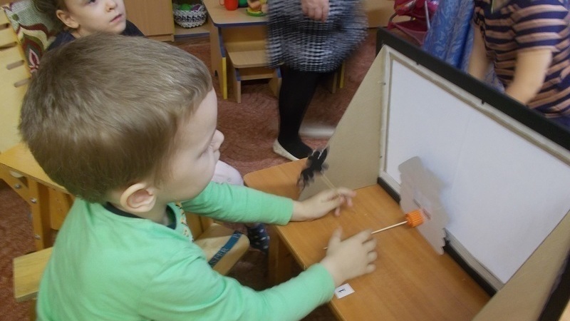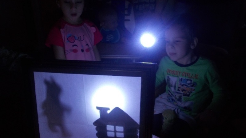 А затем ребята показали себя в роли артистов теневого театра и сыграли сказку «Теремок». Играть в театр очень понравилось.