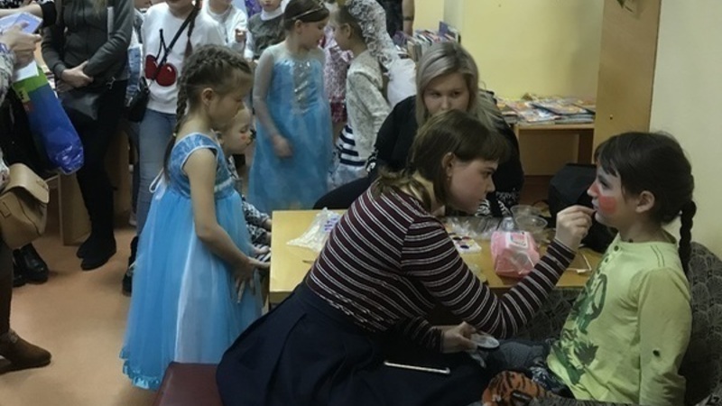 Хорошее настроение юным читателям библиотеки создавали веселый аквагрим и забавные косички от студенток Мурманского технологического колледжа сервиса.