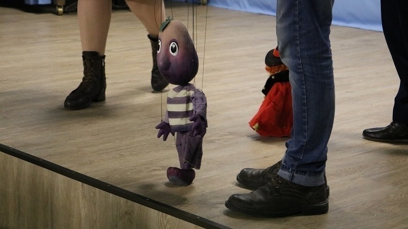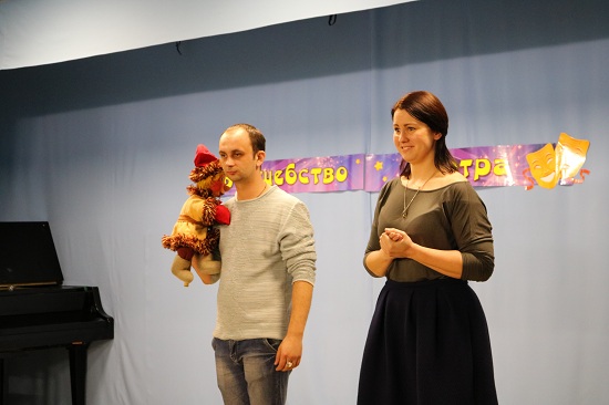 Областной театр кукол представили молодые актеры Иван Песнев и Лилия Федосенко. Они интересно рассказали о своем выборе профессии, учебе, становлении в театре кукол. Зрители задали им вопросы, увидели специфику управления театральными куклами и попробовали себя в роли актеров-кукловодов.