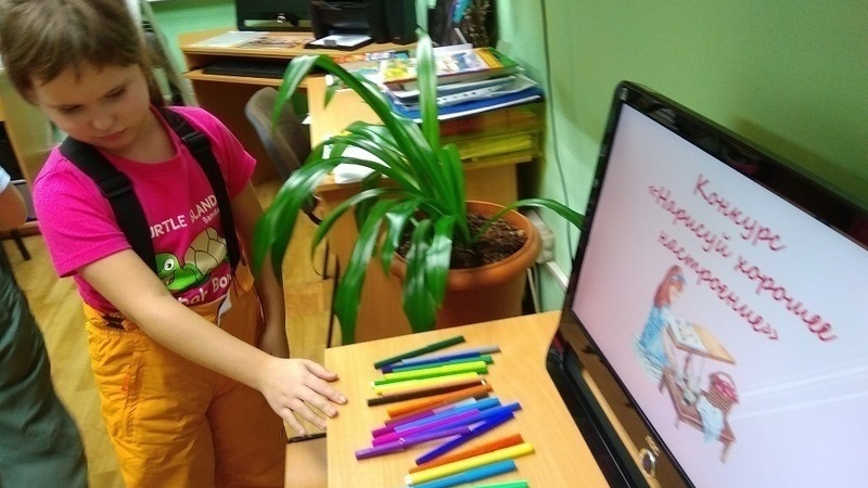 Создание общего рисунка помогло настроиться позитивно. Дети выбрали фломастеры понравившегося им цвета, и нарисовали радугу. Затем они рассказали о своих увлечениях.