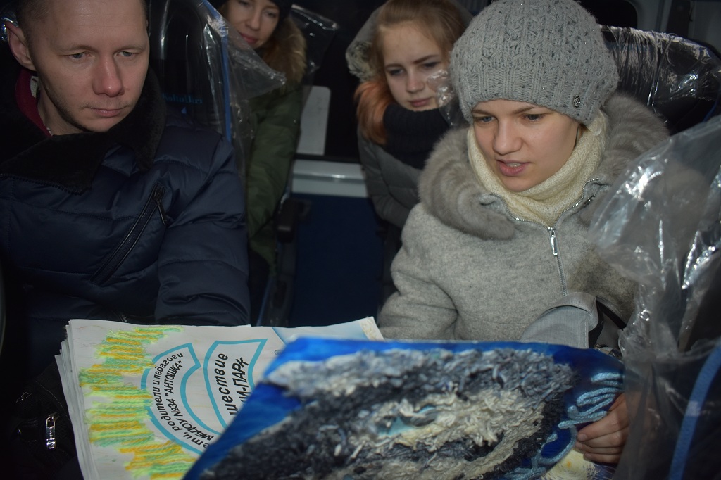 Перед началом экскурсии все с интересом рассматривали рукотворную книгу «Путешествие в Хаски-парк» участников Международного конкурса детской рукописной книги 2016 года. Её авторы, коллектив дошкольного образовательного учреждения №34 «Антошка», рассказали в ней о своём посещении питомника спортивных хаски, оформив рисунками, фотографиями и иллюстрациями в различных техниках.
